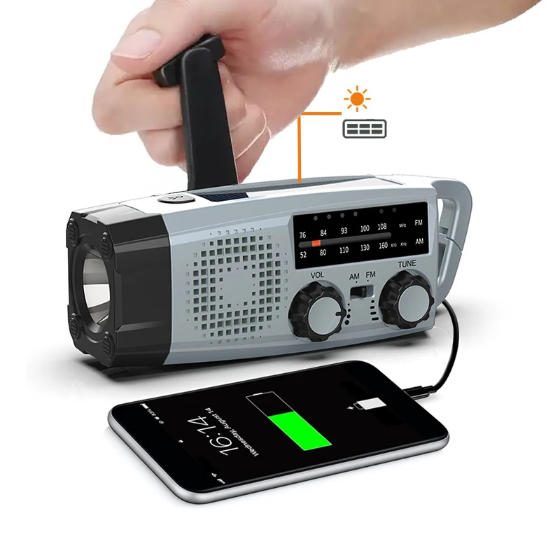 Tempo de carga total: USB cerca de 2 horas (carga de emergência por manivela)